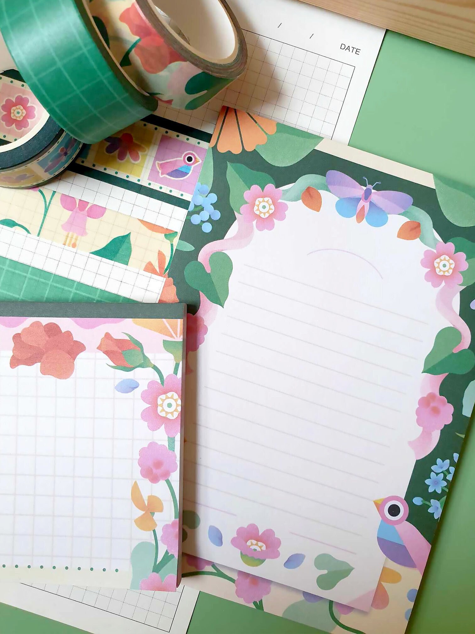 ♥ c o n t a i n s ♥ 1 A6 notepad 50 sheets 80gsm paper (10cm x 14cm) 1 Sticky note 50 sheets 80gsm paper (8cm x 8cm) 3x Washi tape 10m (2.5cm, 2cm, 1.5cm)