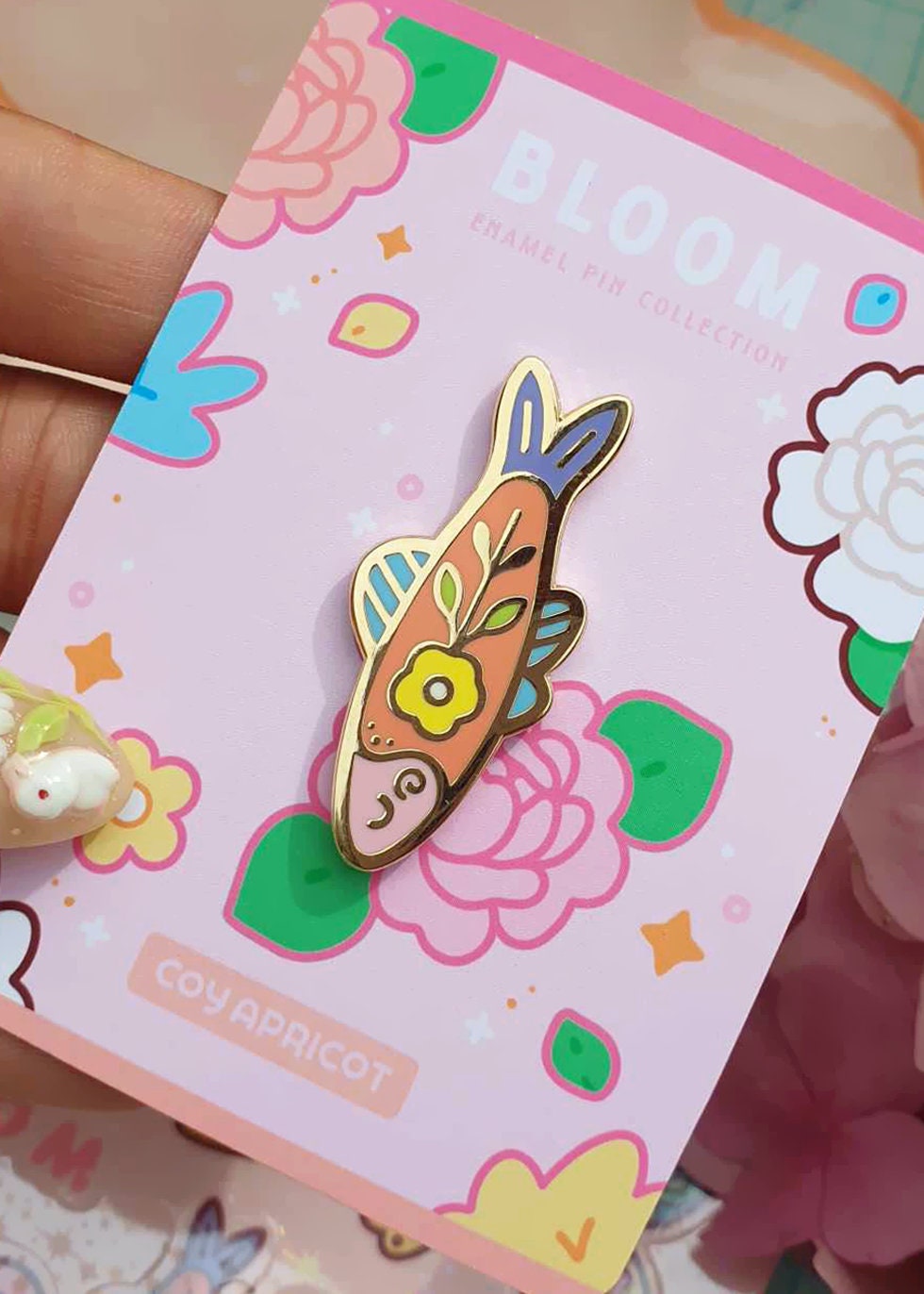 Pin Specs: ♥ 1 High-quality Gold Hard Enamel Pin ♥ Size: H 4cm W 1.8cm ♥ 1.5mm thickness ♥ 2 gold locking back clutches + 2 additional rubber clutches to for your preference ♥ Screen-printed Details ♥ Coy Apricot Logo on the back