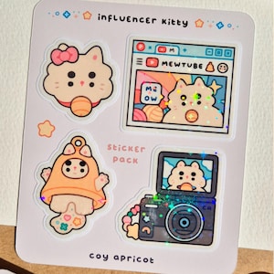Product details: • Comes with 9 mystery stickers in one pack! • Laminated in either matte, glossy or holographic vinyl. • Durable and waterproof so you can confidently display it on your laptop, water bottle, phone, etc. • Comes with a backing card